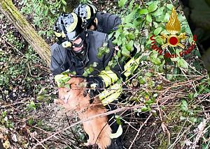 SESTO FIORENTINO. La cagnolina Leila era rimasta bloccata in un portavia in muratura. Il vigile del fuoco più longilineo della squadra è entrato fra terra e detriti