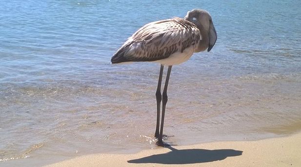 Grande quanto il palmo di una mano, con becco e zampe rosa e il piumaggio grigio, l'uccello è un esemplare di fenicottero minore (Phoeniconaias minor), tra le cinque specie di fenicotteri esistenti al mondo quella più piccola e anche più rara da osservare negli zoo.