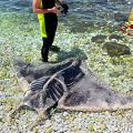 La carcassa è stata recuperata questa mattina dai vigili del fuoco, intervenuti su richiesta della capitaneria di porto