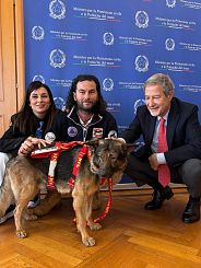 “Ho ricevuto – ha scritto Musumeci sulla sua pagina Facebook - al ministero Marley, un cane cieco impiegato nelle attività di Protezione civile. Grazie all’impegno dei coniugi che lo hanno adottato, sottraendolo al canile, Marley ha conseguito il brevetto di cane da ricerca persone scomparse e cane bagnino. Mi sono congratulato con Chimenti e Nelli per l’amore e l’impegno profusi. Questo straordinario cane cieco è la conferma che spesso la disabilità sta solo negli occhi di chi guarda”.