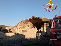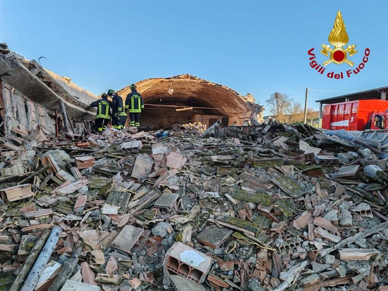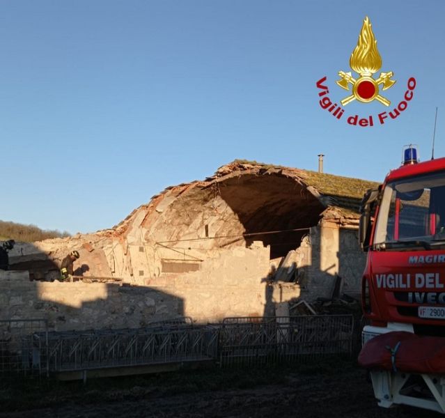L'allarme è scattato alle 5,30 poco dopo la fine delle operazioni di mungitura. Sulle cause del collasso parziale della struttura in muro e mattoni sono stati avviati accertamenti.