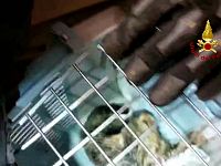 Il micio era rimasto bloccato a testa in giù. Soccorso e liberato dai vigili del fuoco, è stato adottato dalla proprietaria di casa