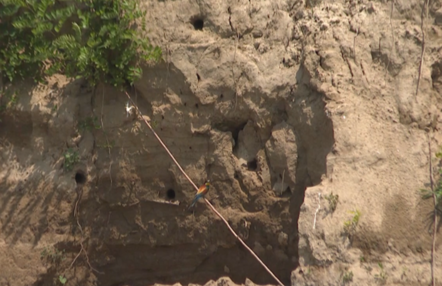 POPPI — Una colonia di gruccioni ha nidificato nei pressi dell'Arno, scavando i loro nidi sulla parete di una scarpata sabbiosa erosa. Proprio là dove era in programma un intervento di manutenzione.